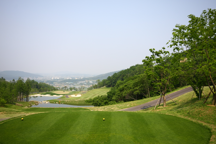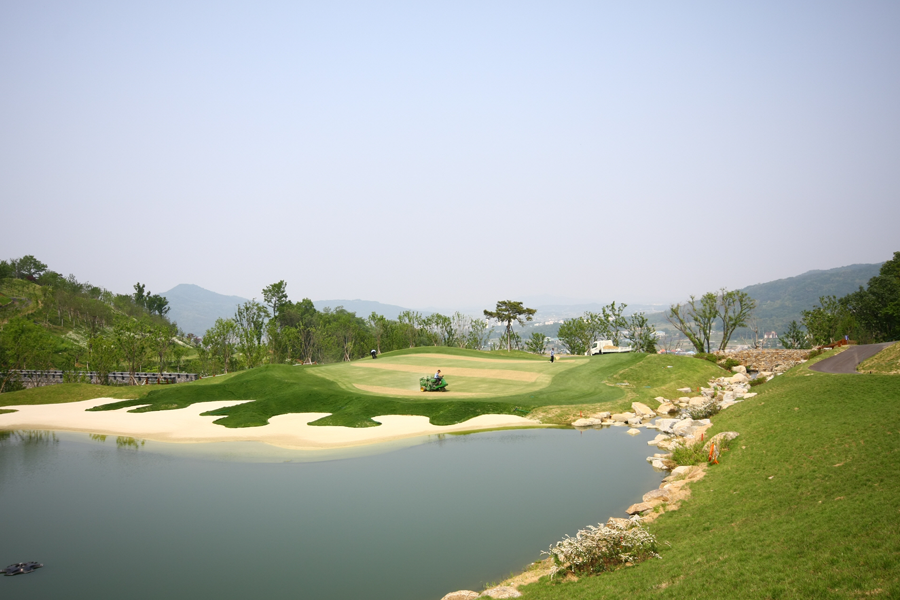 그린 좌측을 대형벙커와 레이크가 펼쳐져 있어, 내리막 티샷을 이용해 최대한 길게 치는 것이 세컨샷에서 쉽게 공략할 수 있습니다. 그린 좌측 비치벙커의 유혹에 빠지지 않도록 주의해야 합니다.