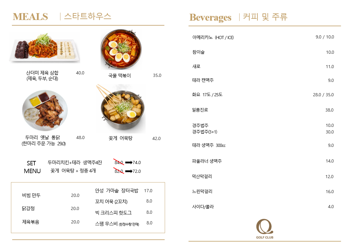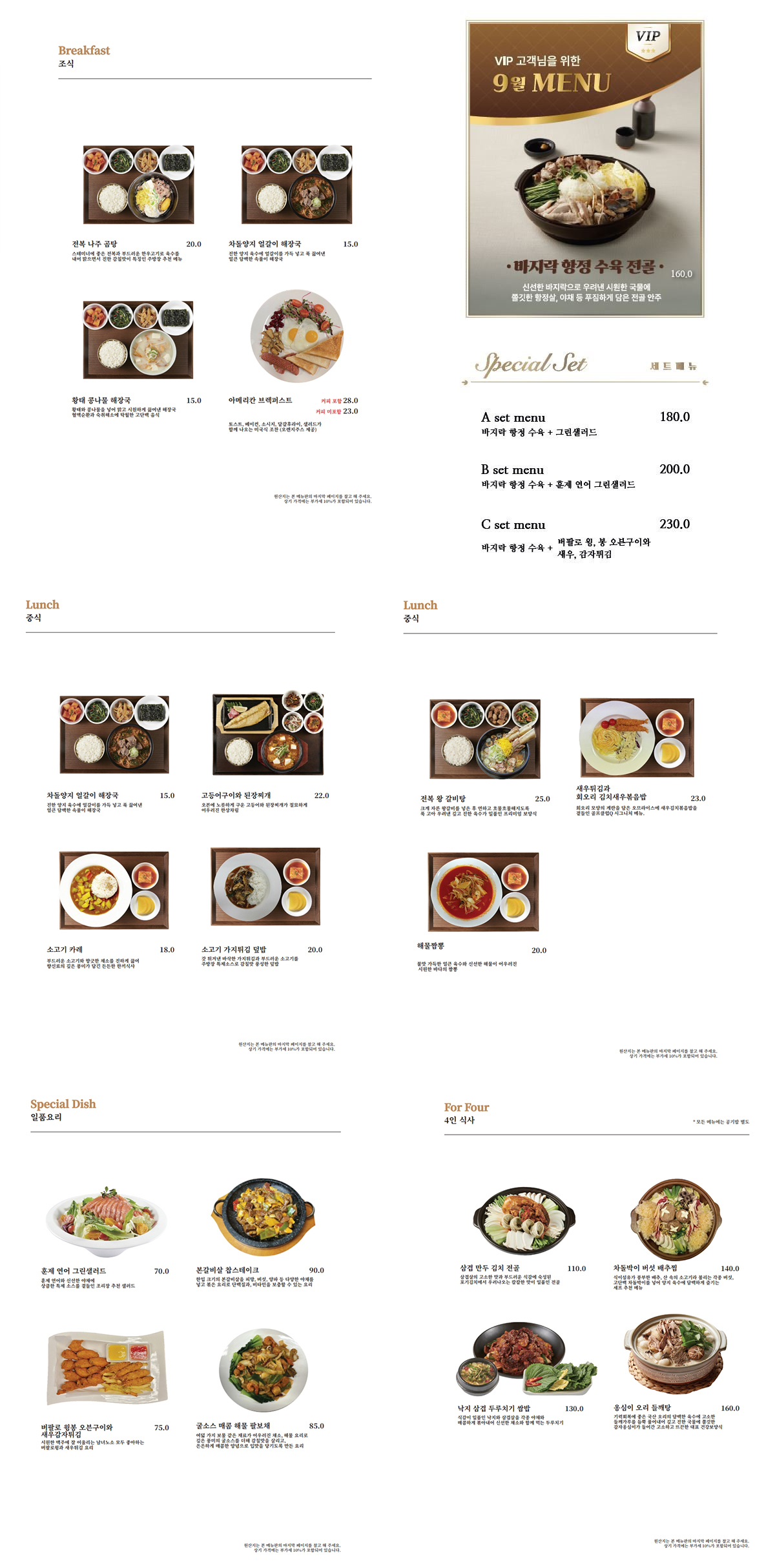 ※ 이용메뉴는 계절에 따라 상이하며, 원자재 가격 상승에 따라 이용요금은 달라질 수 있습니다.